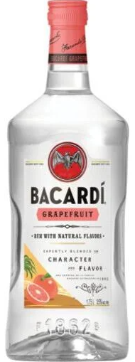 Bacardi Grapefruit rum in a 1.75L bottle is a white rum infused with pink grapefruit flavors, creating a semi-sweet and sour citrus taste. It has a 35% ABV and is designed for mixing cocktails, with suggestions including mixing it with pink lemonade, or adding it to classics like a Mojito or Mule. The product is made by blending Bacardi Superior rum with tropical fruit flavors after aging it for one year.